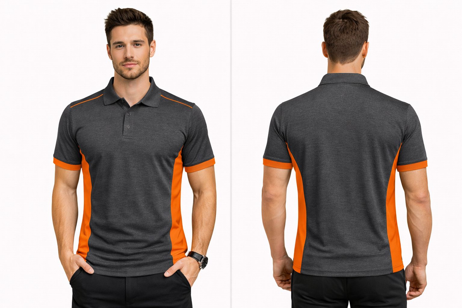 Füme Turuncu Çizgili Polo Yaka Tişört
