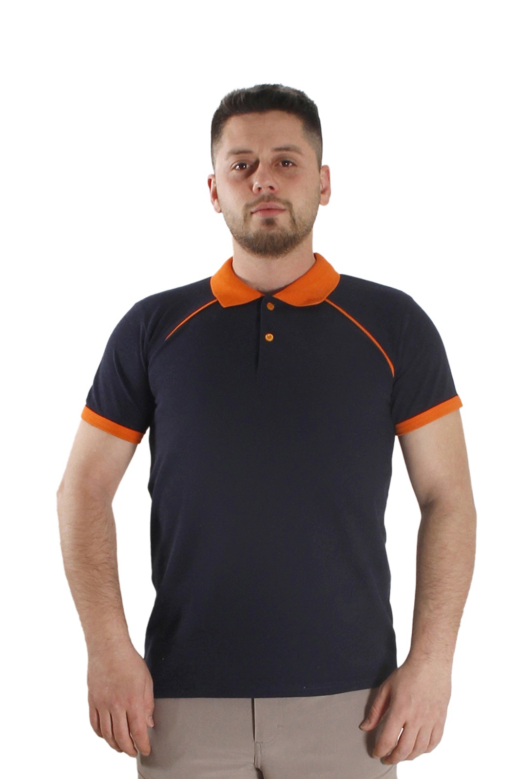 Siyah Turuncu Çizgili Polo Yaka Tişört